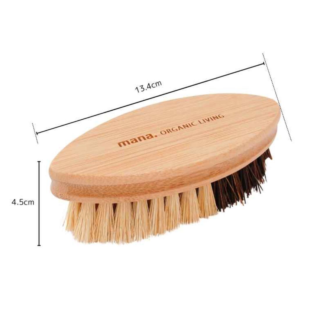 FSC認証を受けた竹と天然植物繊維だけで作られた、100%自然素材のキッチン用ブラシです。サイザル麻の柔らかなブラシと、ココナッツ繊維のしっかりしたブラシの2面構造で、泥落としから皮むきまで幅広く対応。プラスチックフリーで土にも還る素材なので、環境を思いやる暮らしにもぴったり。