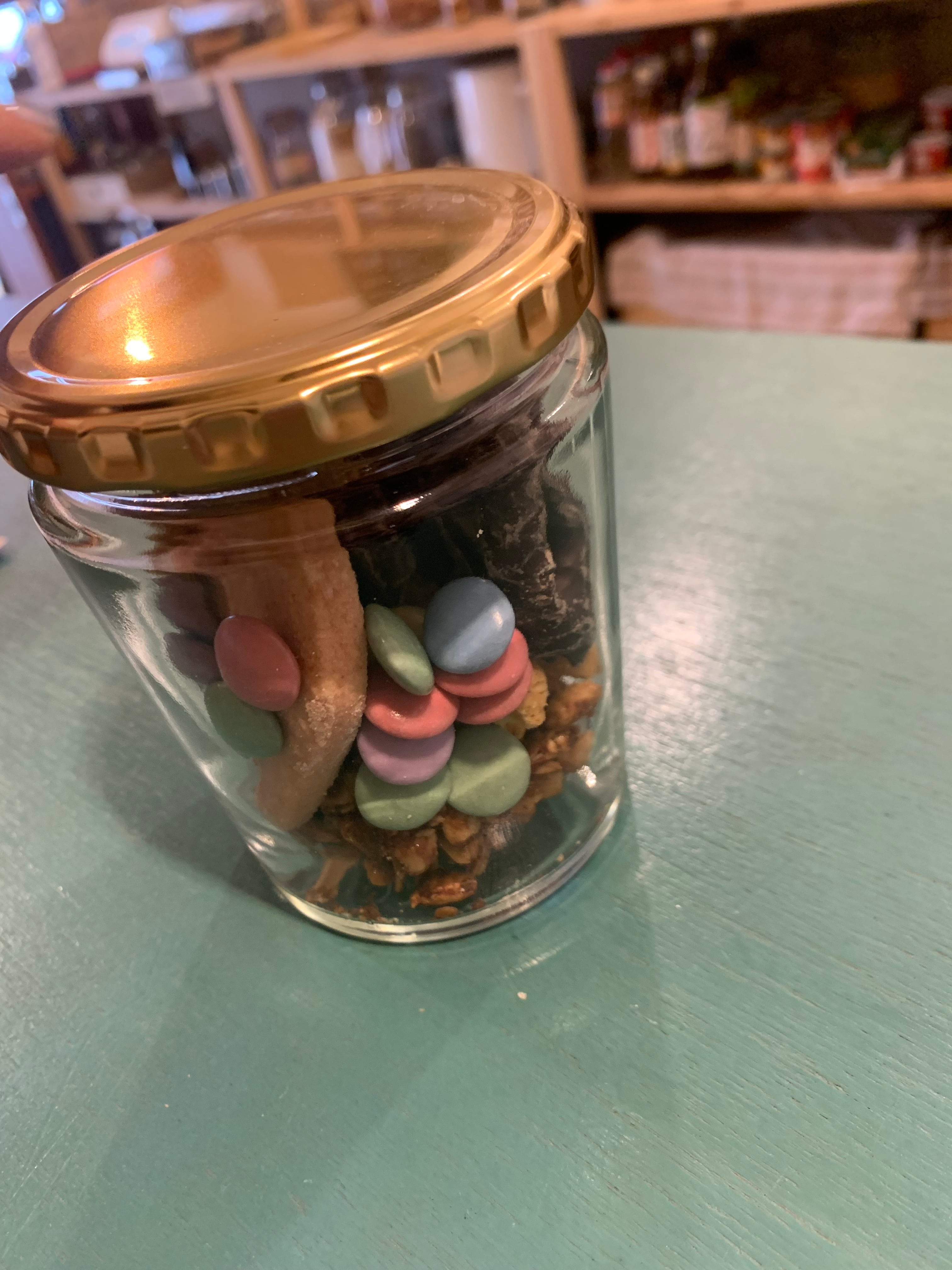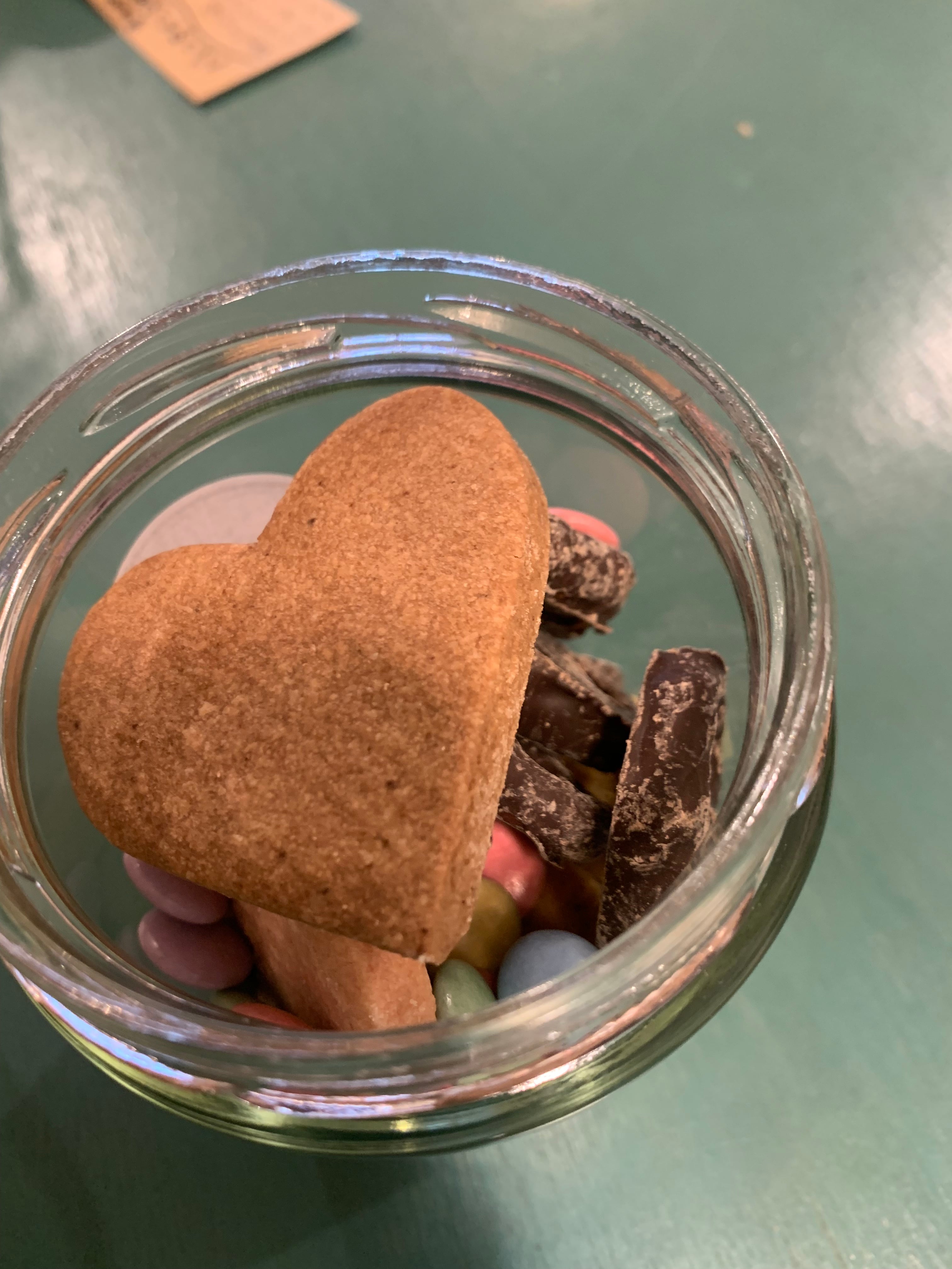 バレンタインにぴったりなクッキーやチョコレートを瓶にギュッと詰め込んだおやつを数量限定で販売します。 米粉のハートビスケット、お豆腐ビスコッティ、カラーチョコ、チョコプレッツェルが入っています。